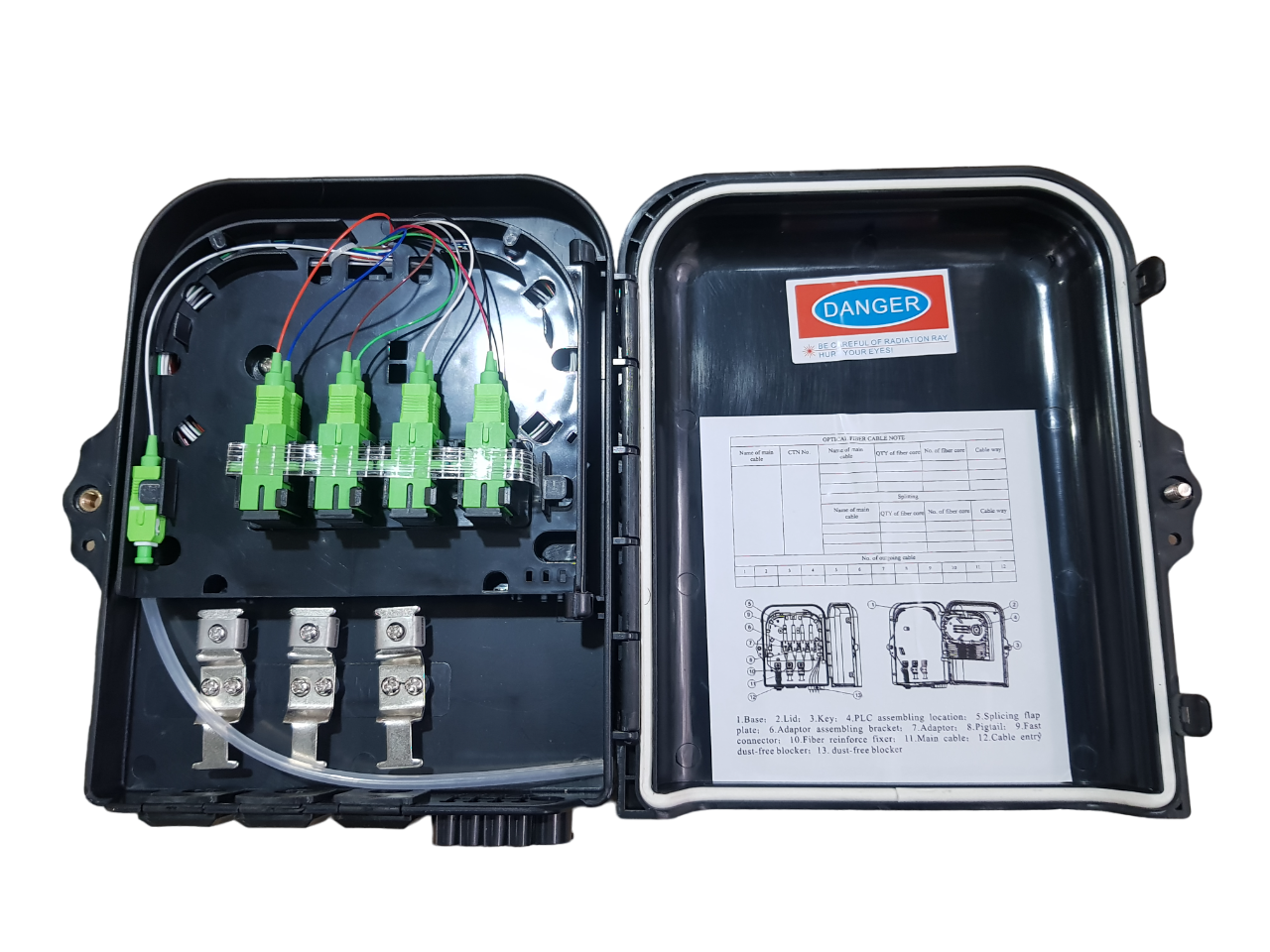 La caja de terminación de fibra proporciona una solución montada en pared o poste de alta densidad para la próxima generación de redes, que tiene como objetivo proporcionar y gestionar una terminación de fibra en un espacio limitado.